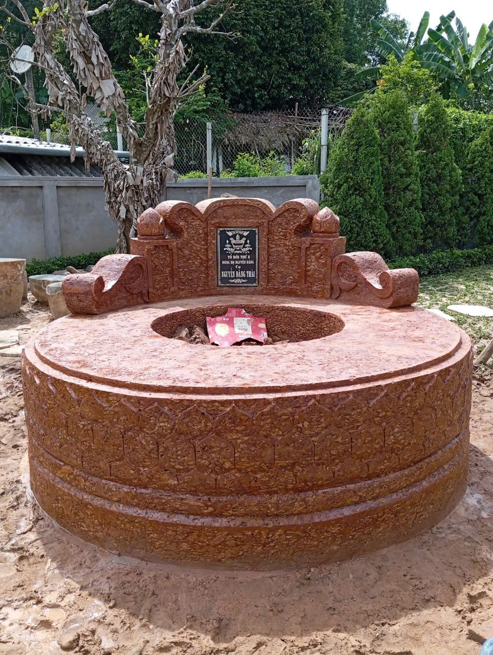 Lăng mộ được chế tác hoàn toàn từ đá ong tự nhiên, mang đến sự bền chắc, chịu được thời tiết và tuổi thọ lâu dài. Kiểu dáng tròn, vững chãi kết hợp các họa tiết tinh xảo trên bề mặt tạo cảm giác trang nghiêm, uy nghiêm, phù hợp cho nơi tưởng niệm linh thiêng.