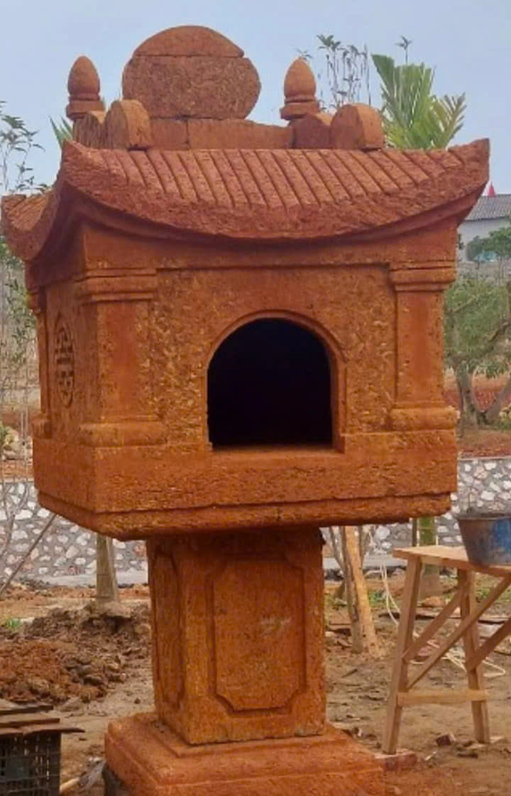 Miếu thờ bằng đá ong (còn gọi là nhà thờ nhỏ, miếu thờ gia tiên, miếu thổ công) là một sản phẩm tâm linh được làm hoàn toàn từ đá ong tự nhiên, nổi bật với sắc đỏ nâu trầm ấm, tạo cảm giác cổ xưa và hài hòa với cảnh quan truyền thống.