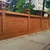 Thiết kế tường và lan can bằng đá ong được chạm khắc tỉ mỉ, kết hợp giữa các chi tiết hoa văn truyền thống và phong cách hiện đại, tạo cảm giác uy nghiêm nhưng vẫn gần gũi với thiên nhiên. Màu sắc ấm áp, tự nhiên của đá ong giúp hài hòa với không gian sân vườn, lối đi, hay các khu công trình kiến trúc tâm linh.